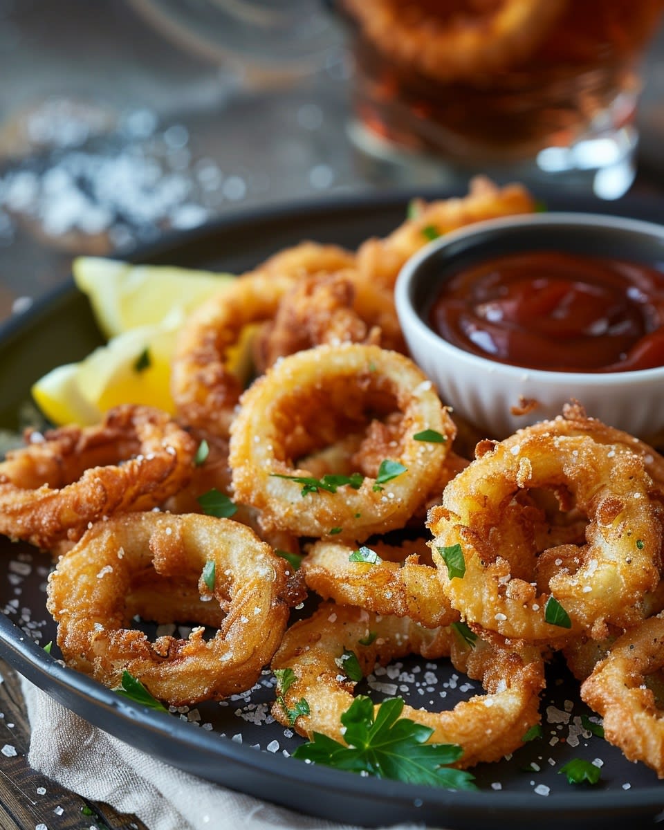 Yes, you can definitely bake them for a lighter version, though they won’t be quite as crispy as fried ones. Preheat your oven to 425 degrees and arrange coated rings on a baking sheet lined with parchment paper. Spray them lightly with cooking oil. Bake for about 15 minutes, flip them, spray again, and bake another 10-15 minutes until golden brown. Air fryers work even better than ovens for baked versions, giving you results closer to deep-fried texture.